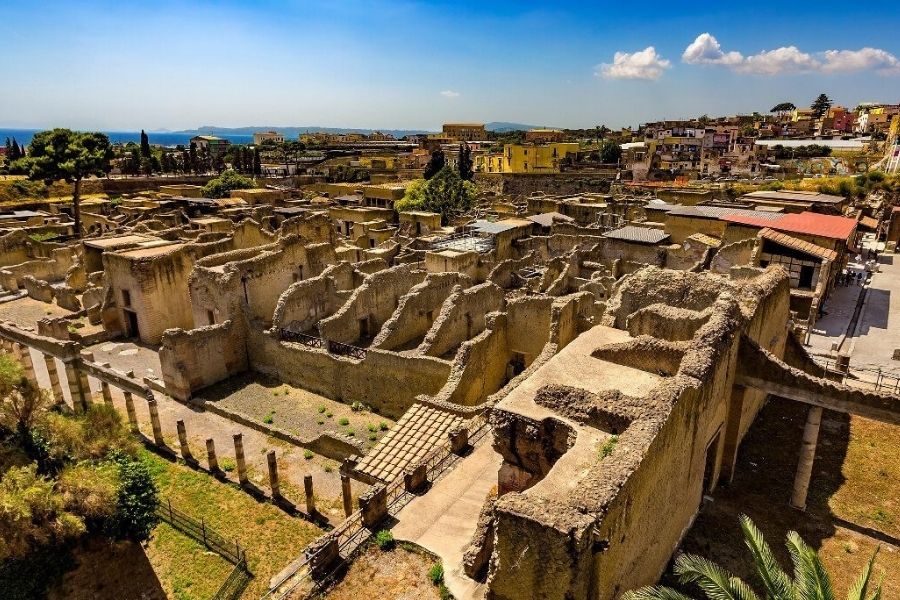 Explore, with our 2 hours guided tour, the ruins of Herculaneum that after the eruption of the volcano in 79 AD was destroyed and buried. At the end you will enjoy a typical lunch and a wine tasting typical of the Vesuvius area.